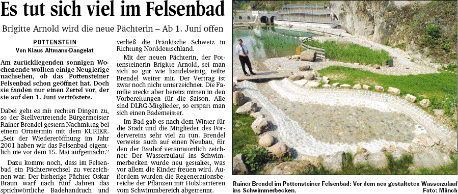 Es tut sich viel im Felsenbad (Nordbayerischer Kurier - 09.05.2006) [ 125.16 KB ]