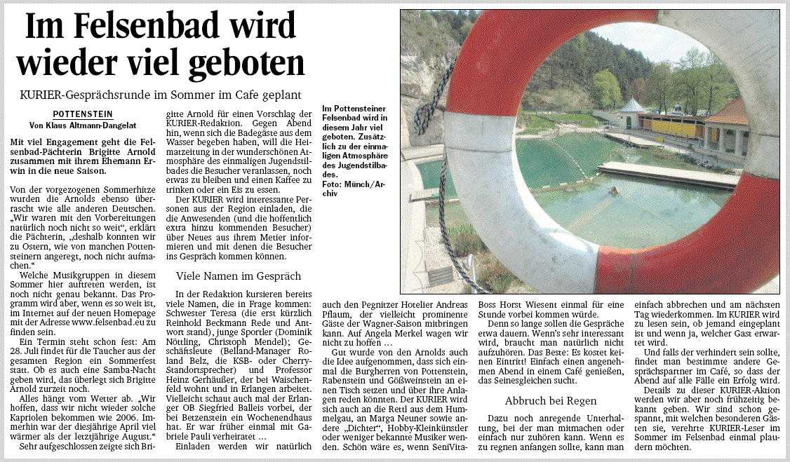 Im Felsenbad wird wieder viel geboten (Nordbayerischer Kurier - 12.05.2007) [ 201.54 KB ]