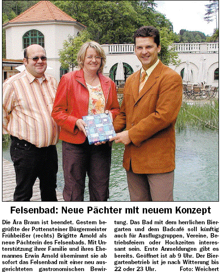 Felsenbad: Neue Pächter mit neuem Konzept (Nordbayerischer Kurier - 03.06.2006) [ 117.10 KB ]