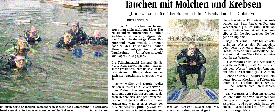 Tauchen mit Molchen und Krebsen (Nordbayerischer Kurier - 17.08.2006) [ 198.20 KB ]