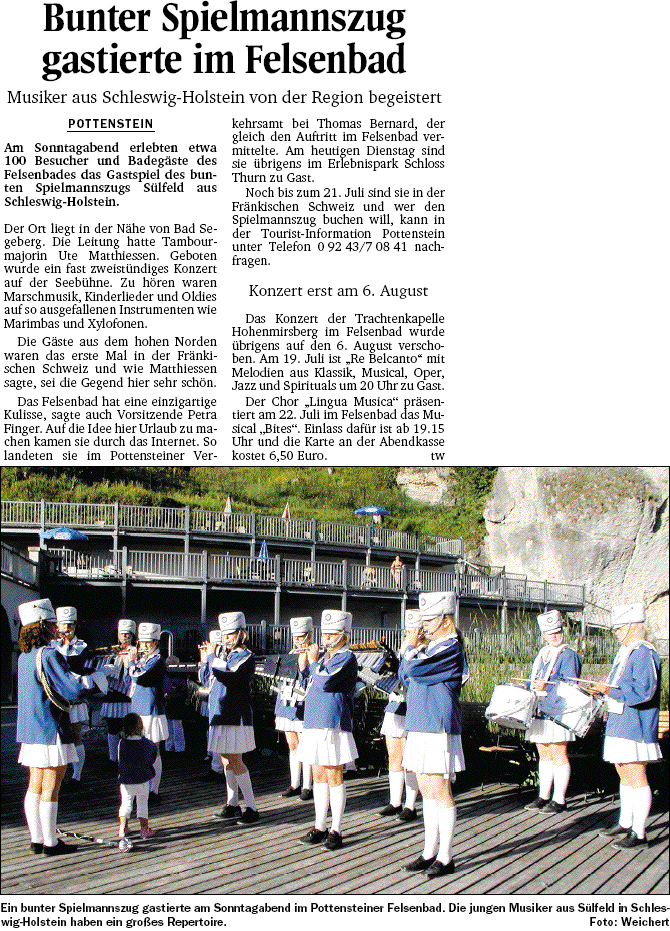 Bunter Spielmannszug gastierte im Felsenbad (Nordbayerischer Kurier - 18.07.2006) [ 202.33 KB ]